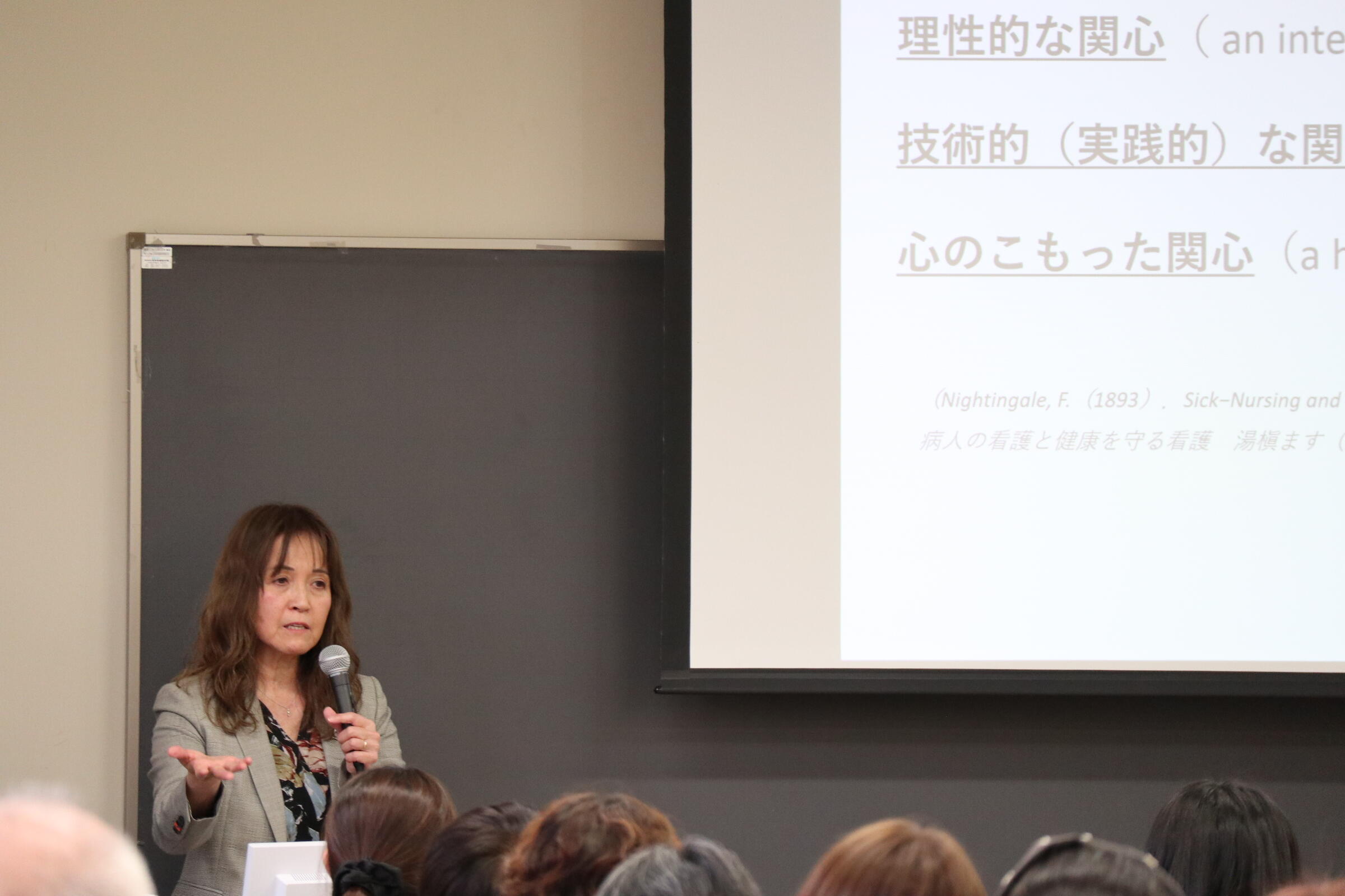 特に、リプロダクティブ・ヘルス/ライツ(性と生殖に関する健康と権利)の普及と、一人ひとりの生き方・多様性を尊重する看護教育への情熱について、これまでの研究成果や現場でのエピソードを交えながら静かに、かつ力強く語られました。