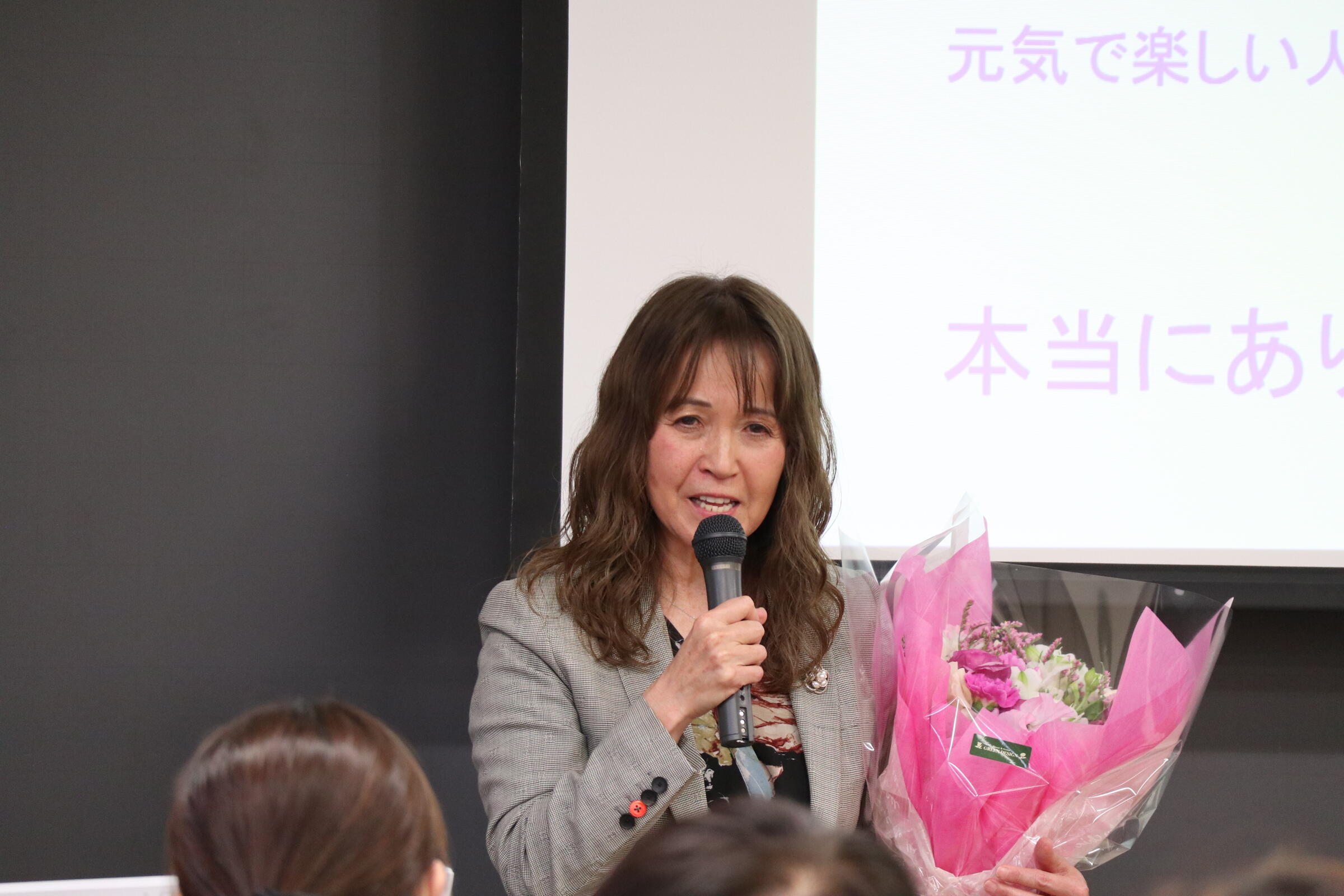 講義の最後には、感謝の意を込めて学生や教職員から花束が贈呈されました。鳴り止まない拍手の中、福島先生は穏やかな表情で、これまでの歩みを共にしたすべての方々への謝辞を述べられました。