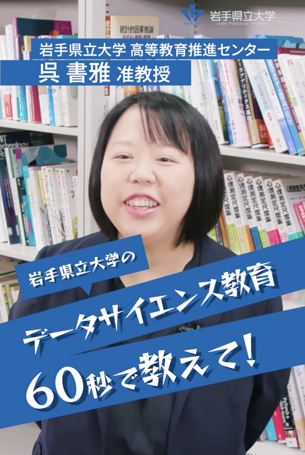 未分類 先生の学び60秒で教えて!【データサイエンス編】(高等教育推進センター 呉先生) データサイエンスって難しそう そう考えているあなた! 岩手県立大学のデータサイエンス教育は、 資料の作り方から本格的なプログラミングまで 学部を問わず基礎から応用まで学べます 岩手県立大学で学んでみませんか? #岩手県立大学 #受験生 #データサイエンス #大学での学び 未分類 先生の研究60秒で教えて!【農村社...
